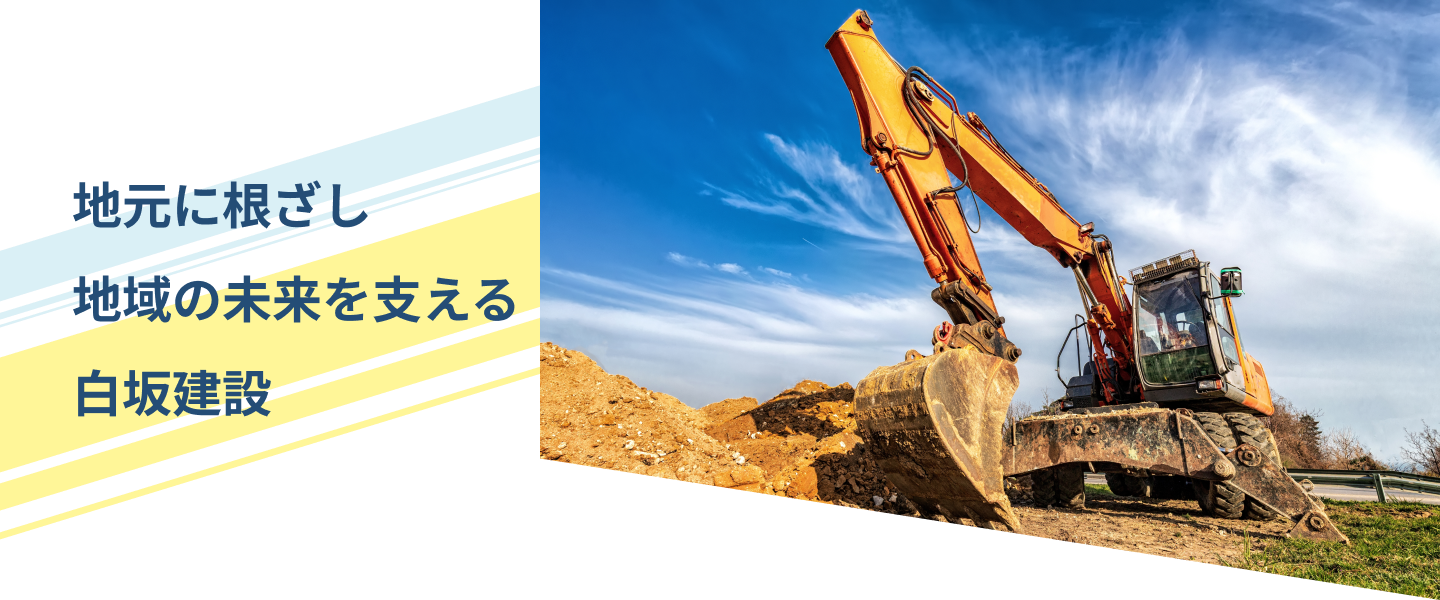 株式会社白坂建設は、昭和から続く地域密着の建設企業として、土木工事、舗装工事、解体工事、白砂販売において確かな技術と誠実な対応を心がけてまいりました。これからも地域の安心と安心の未来づくりに貢献すべく、最新の技術と高い品質で皆様の信頼にお応えしていきます。